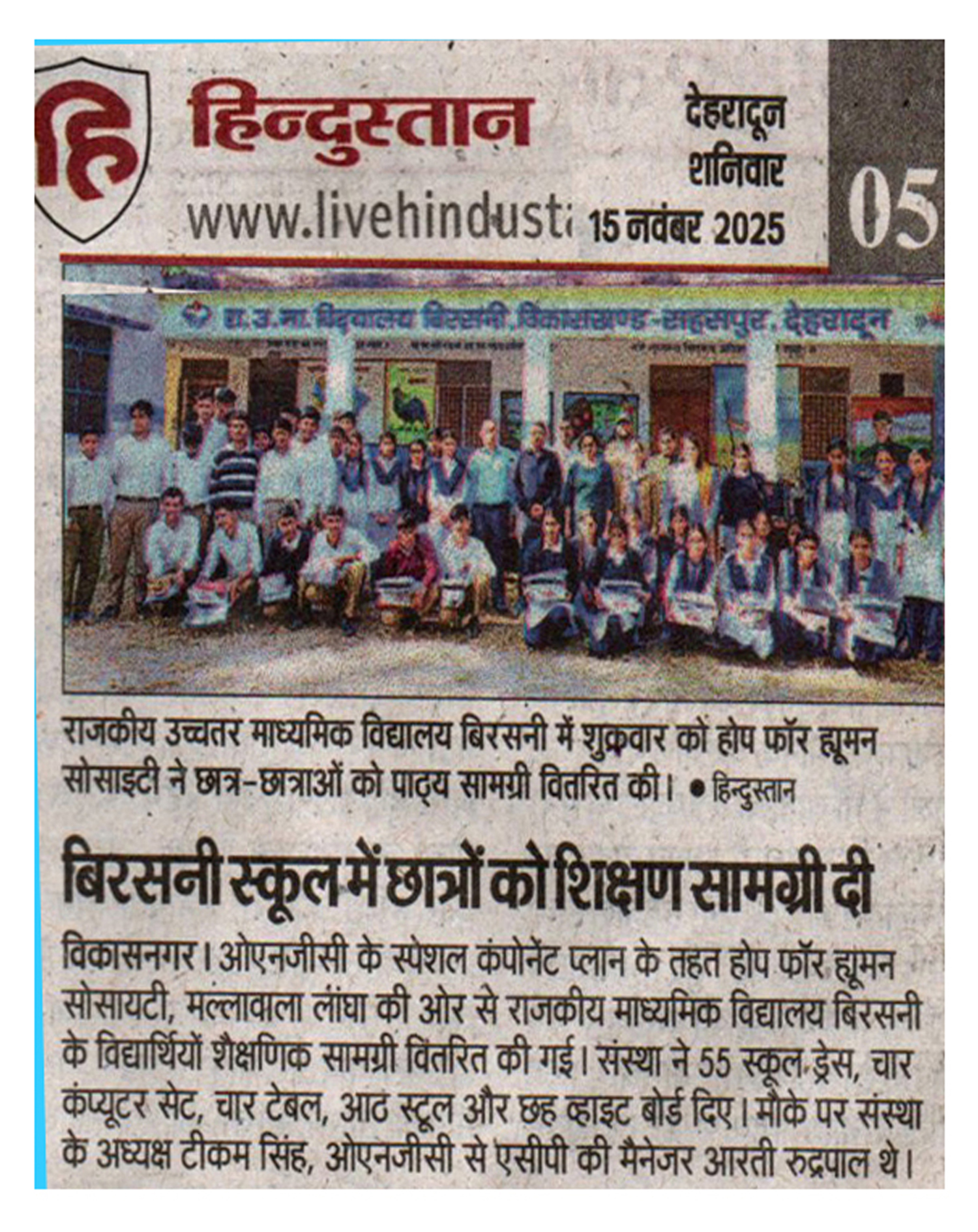 सोसाइटी ने विद्यार्थियों को शैक्षिक सामग्री का वितरण किया
